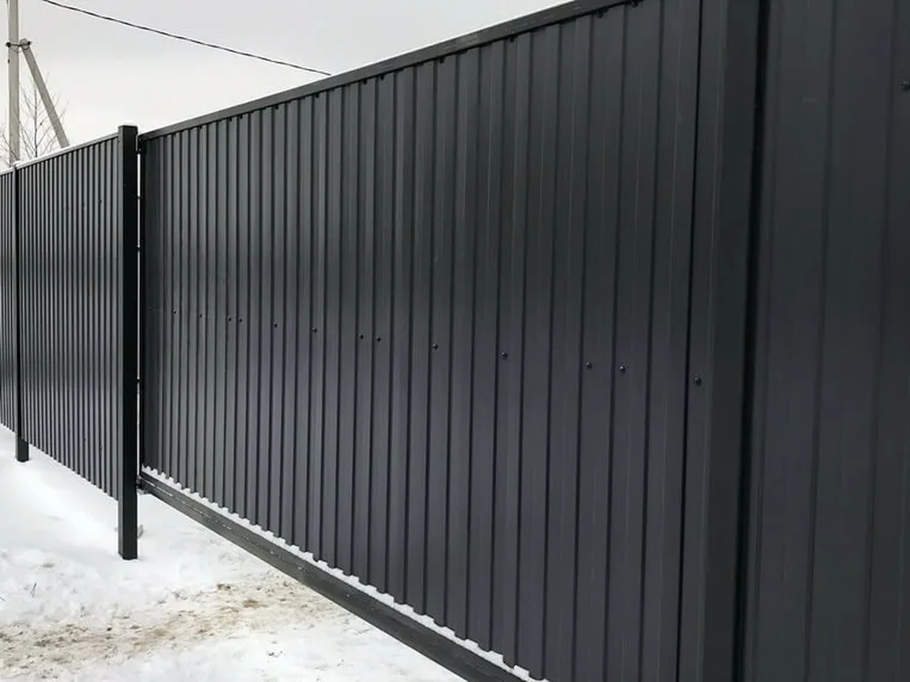 Профлист С-8 с матовым двусторонним покрытием в сером графитовом оттенке представляет собой надежный материал для ограждений и фасадов. Толщиной 0,4 мм, он сочетает прочность и эстетику, подходя для различных строительных задач.